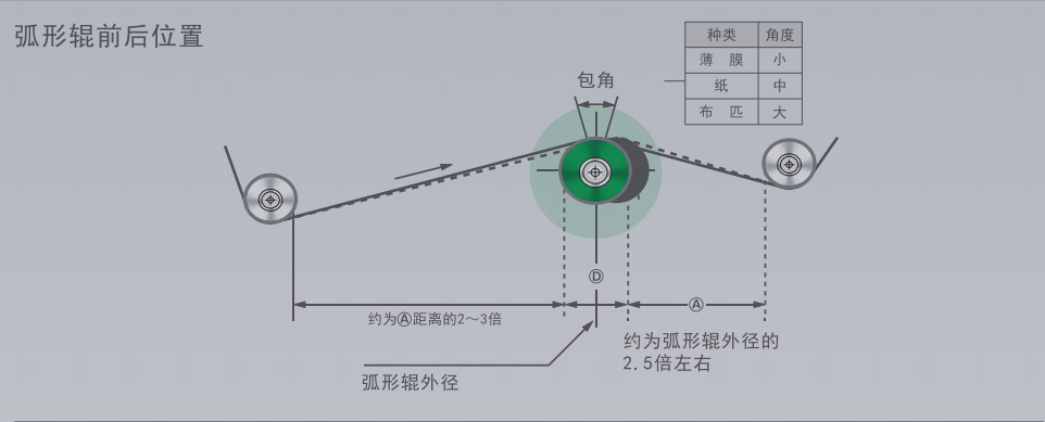 基材通過弧形輥的弧面,通常要有較長的導(dǎo)入距離 B和較短的導(dǎo)出距離